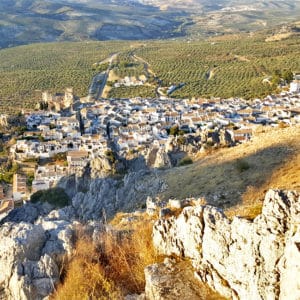 After breakfast, we’ll begin pedalling through classic Andalusian countryside, over rolling hills covered with endless olive trees and vineyards. Once we pass the town of Cabra, we will continue along a peaceful biking path (via verde), a former railway line once used to transport trains full of olive oil from Andalusia to the rest of Spain. Our destination for today is the charming medieval Moorish village of Zuheros, a striking example of beautiful Andalusian architecture, nestled in the Sierra Subbética mountain range.